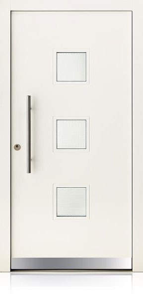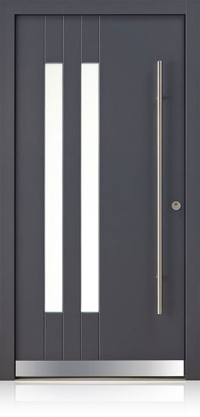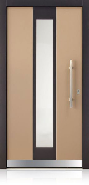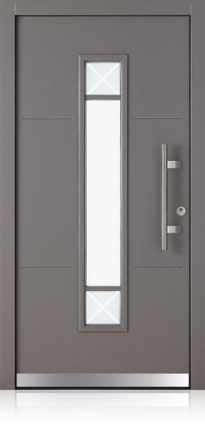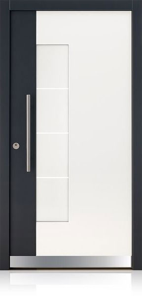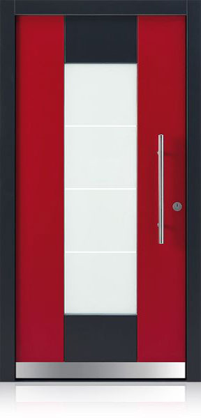 Diese moderne Modellreihe aus dem Hause KOMPOtherm® fasziniert durch ihre außenflächige Optik, mit Applikationen aus Aluminium und Edelstahl. Diese eleganten, geradlinigen Modelle verzaubern durch Kombinationen von neuartigen Farben und Verglasungen. Auch diese Haustürfüllungen verfügen über das patentierte Glaswechselsystem auf der Innenseite.